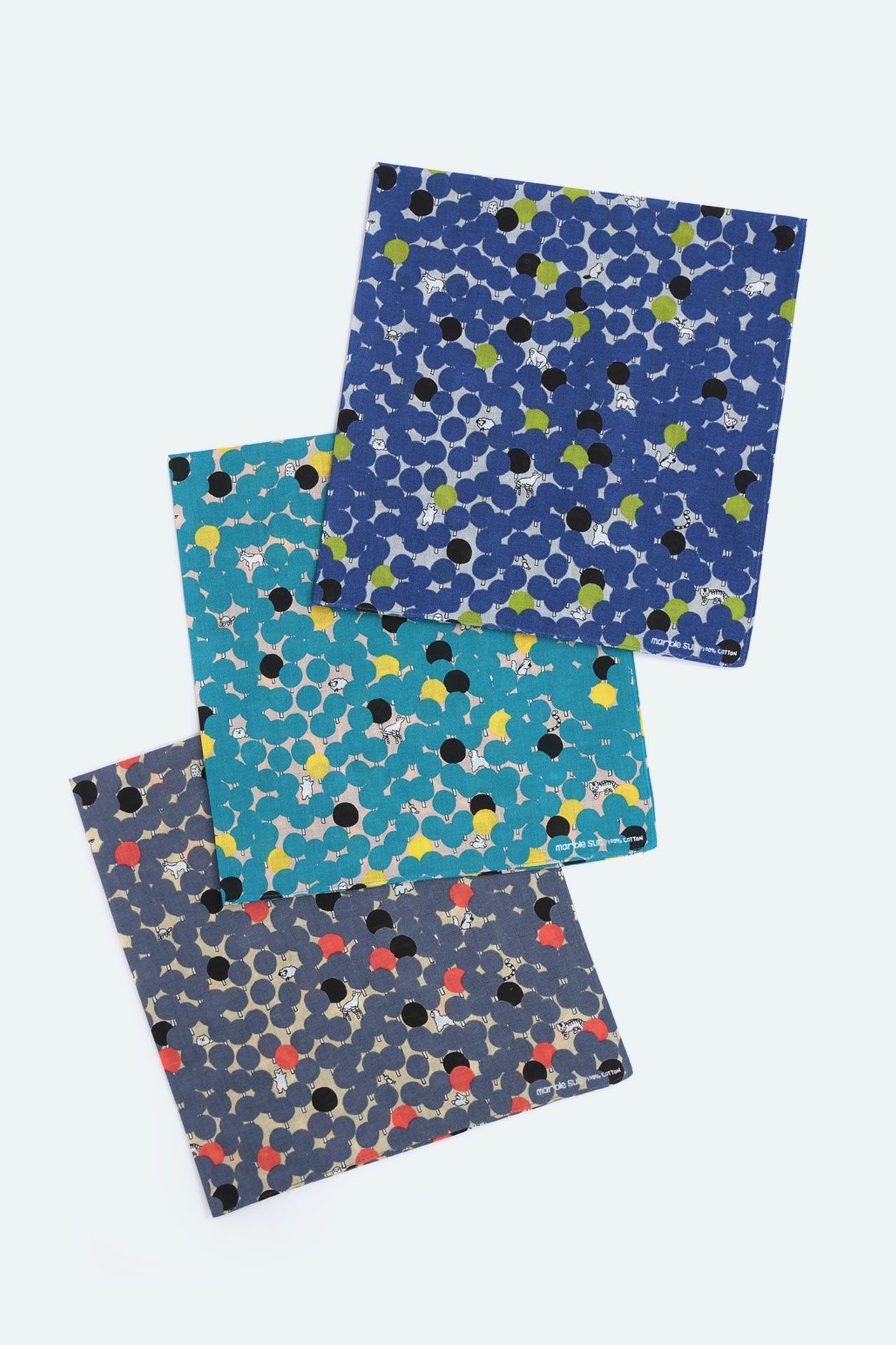 大判のバンダナはハンカチとしてはもちろん、お弁当の包みなどの使い方も。クリップをつけて棚の目隠しにしたり、テキスタイルのかわいさを生かしたインテリアとしての使い方もおすすめです。