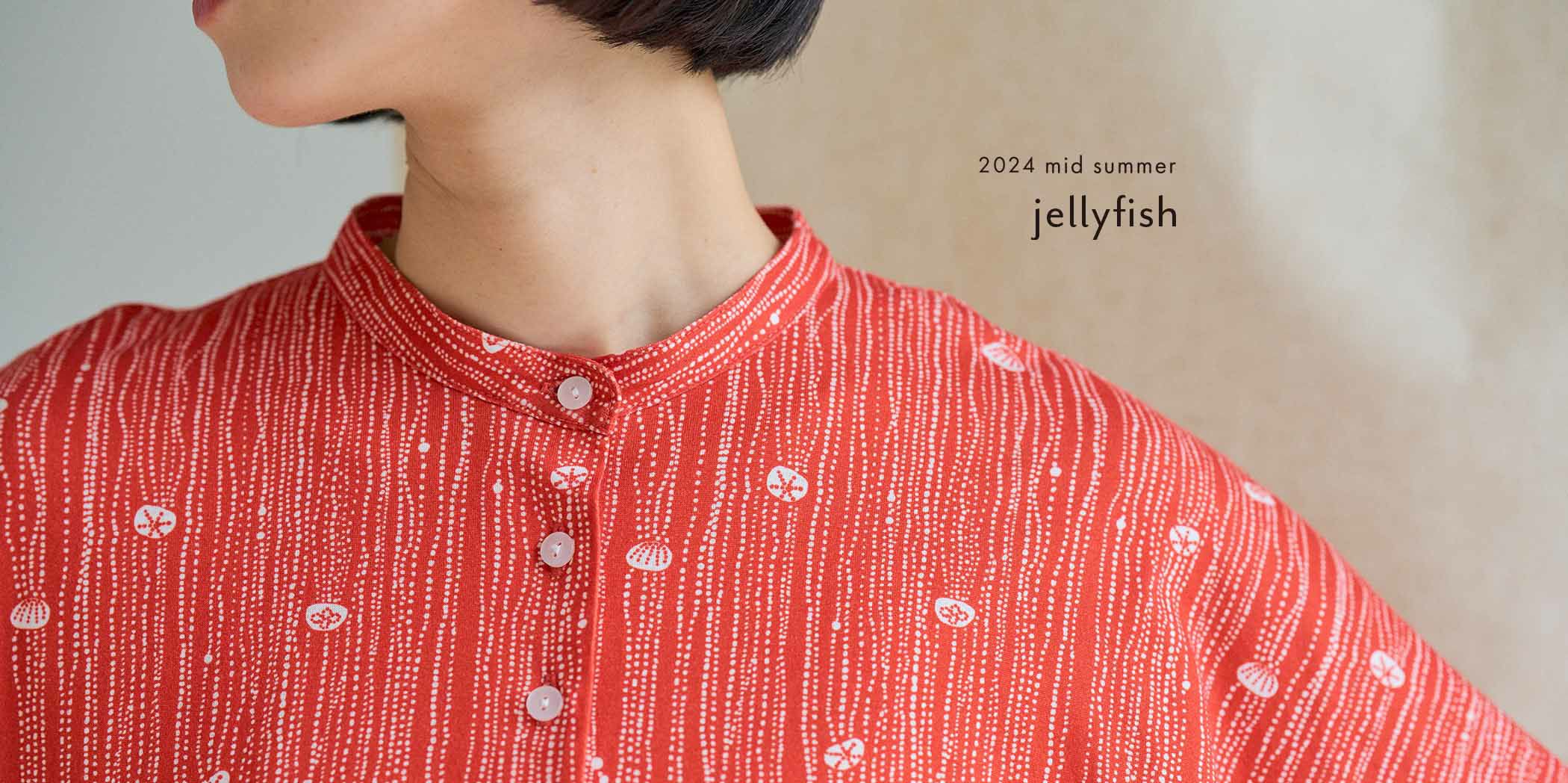 ゆらゆらと気ままに水中を漂うクラゲ。涼やかで癒される姿がストライプ風のプリントになりました。 柔らかく肌触りの良いカットソー素材で、クラゲのようにゆったりした時間を。