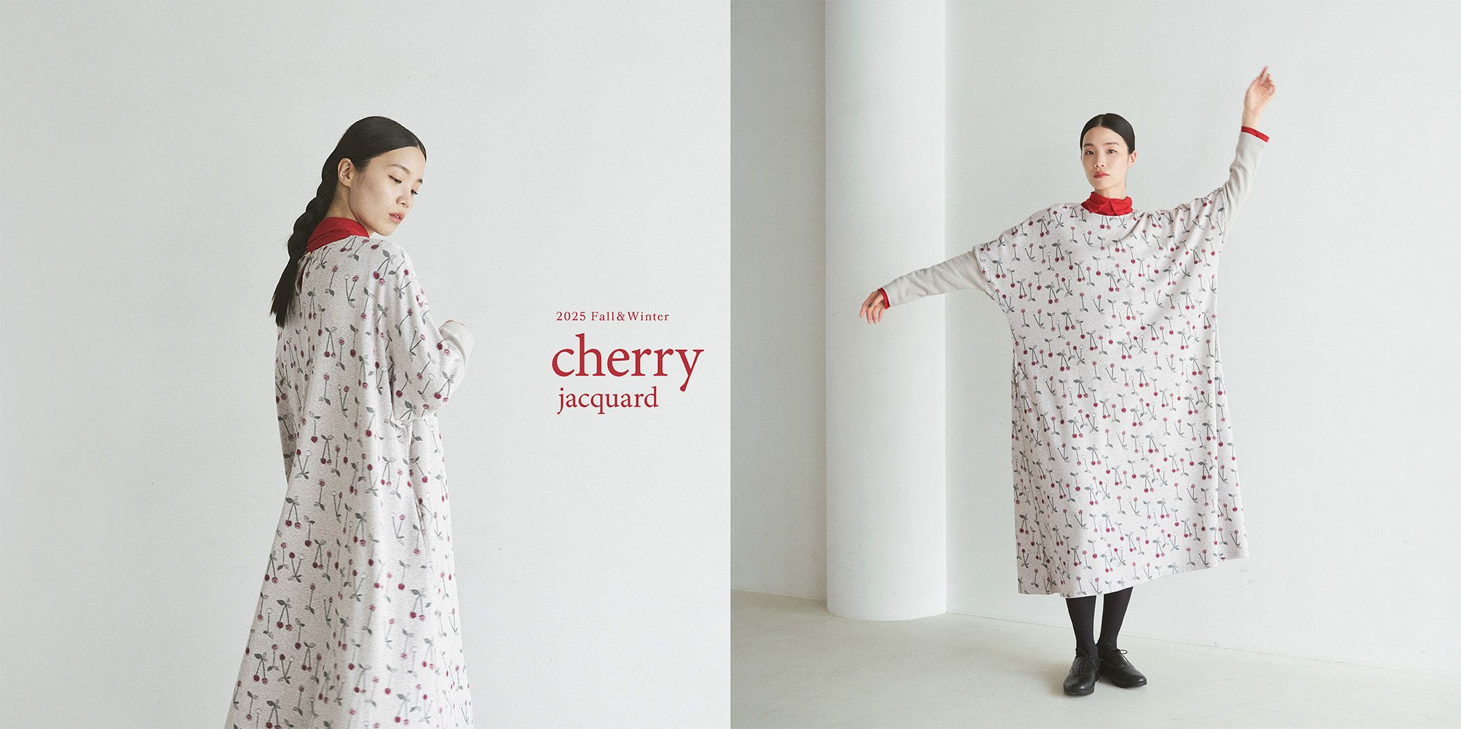 フレッシュなさくらんぼを、甘すぎずスタイリッシュに描きました。茎と葉っぱの部分にフォーカスをあてたデザインで、大人っぽく着ていただけます。あたたかみのある定番のコットンダブルジャカード素材です。