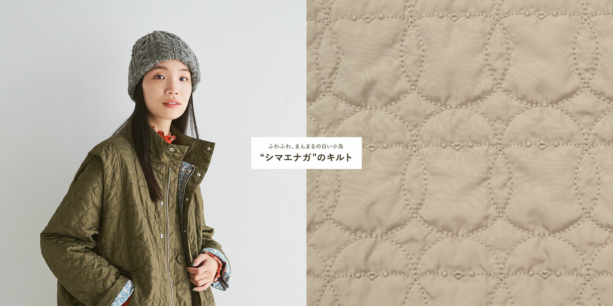 まんまるふわふわで愛らしい、冬の妖精シマエナガがキルト素材になりました。かわいいモチーフも単色のドットのように見せることでシンプルで上品なテキスタイルに。 薄くて軽いけれどしっかりあたたかい、便利な機能素材のキルトシリーズ。