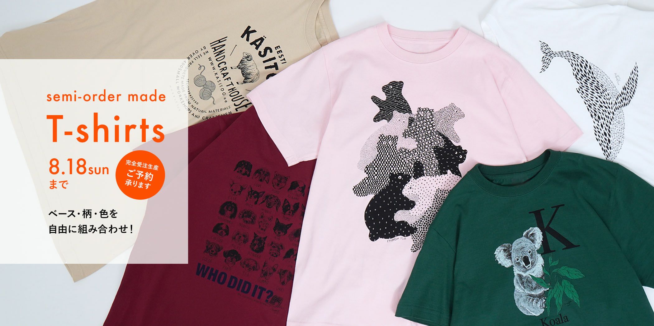 夏の装いを応援するべくスペシャルな「Tシャツ受注会」を開催! 受注会では、Tシャツの“ベース”、“柄”、“色”、の3つを自由に組み合わせる事ができます。 自分だけのとっておきの1枚をカスタマイズしてみてくださいね。 詳しくはこちら
